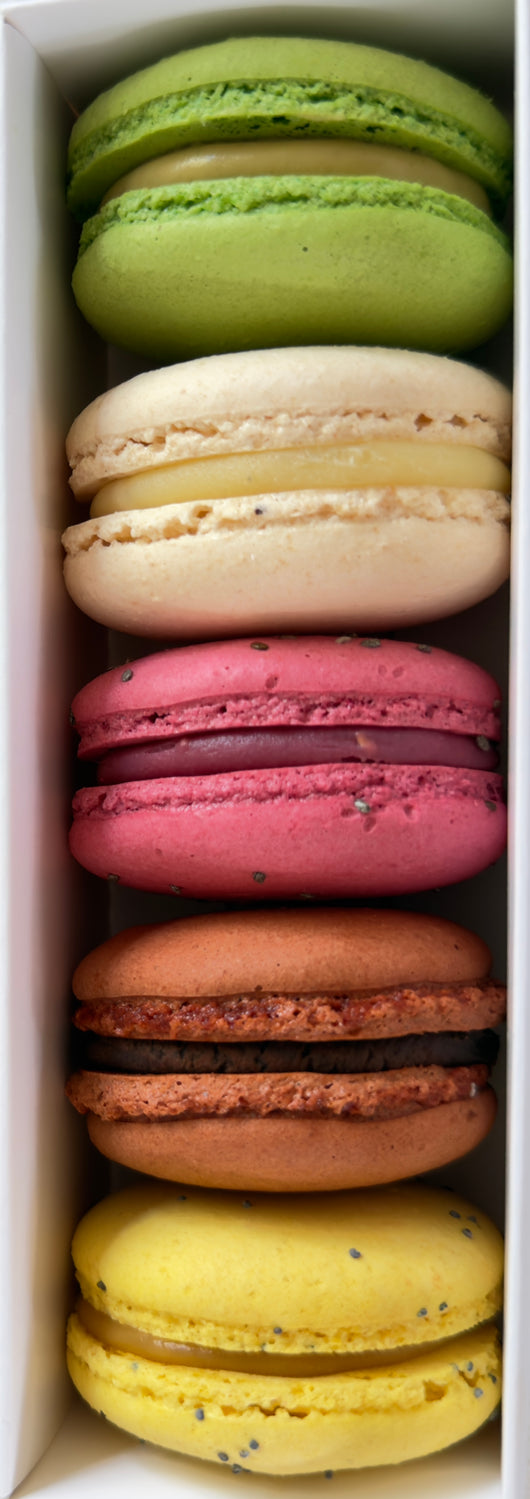 The perfect gift or treat composed of eight macarons filled with delicate ganache. These macarons are light and fluffy and the best macarons outside of France.